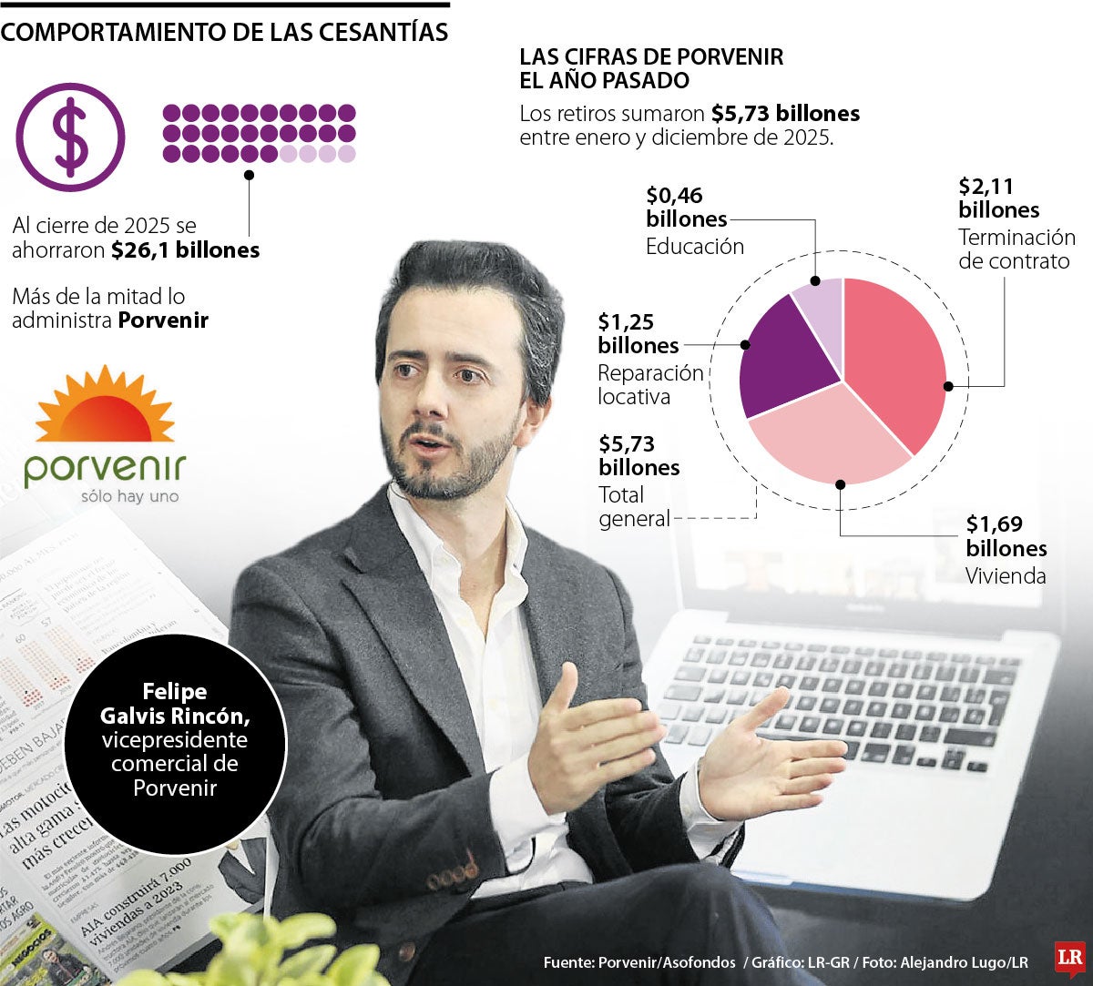 Su vicepresidente comercial, Felipe Galvis, destacó que de los 10,8 millones de trabajadores que ahorran cesantías, más de 5 millones están afiliados a Porvenir