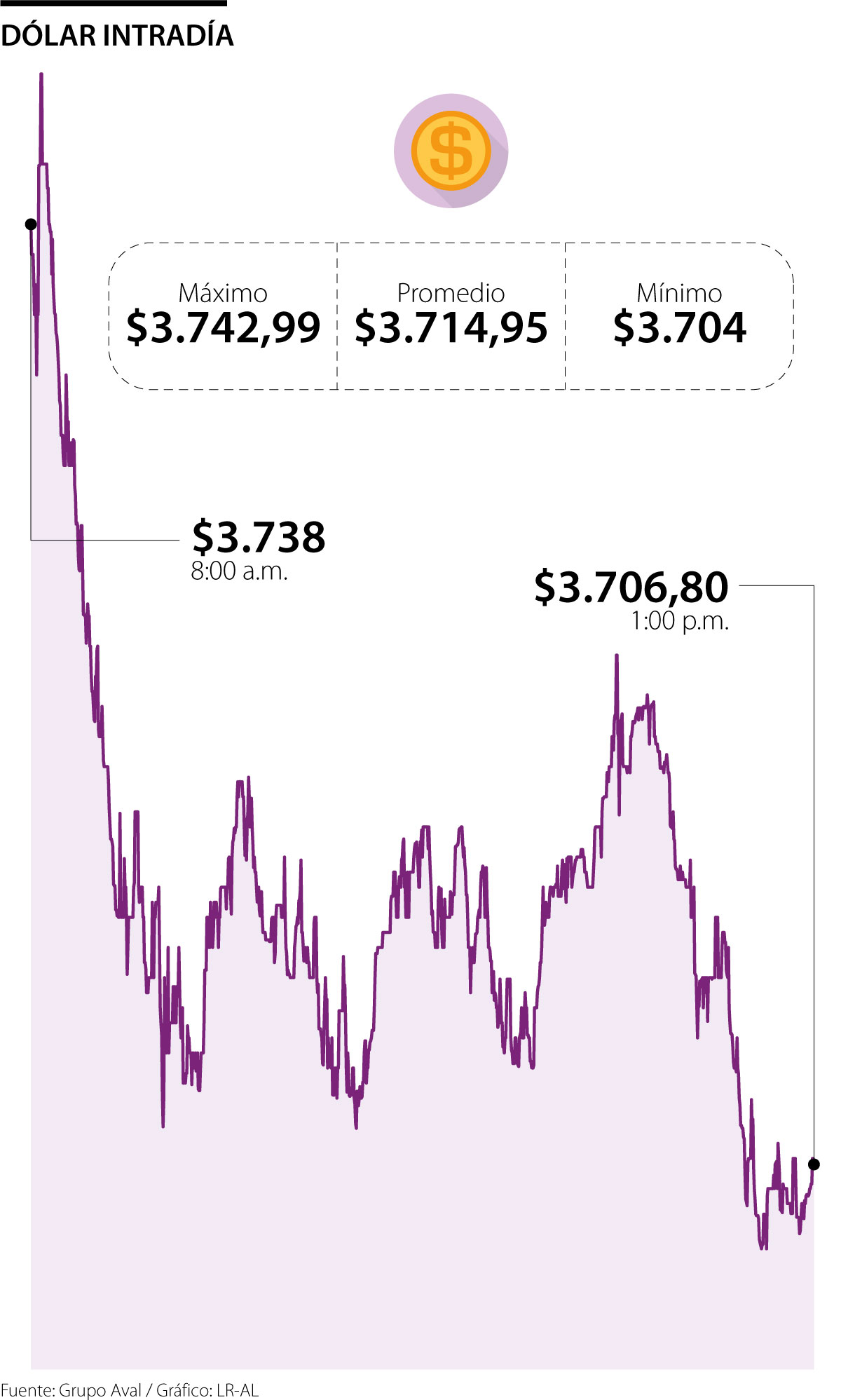 Luego de una semana volátil, el dólar abrió este lunes a un precio promedio de cotización de $3.735,16 y cerró a $3.714,95, lo que representó una caída de $50,38 frente a la Tasa Representativa del Mercado (TRM), que para la jornada se ubicó en $3.765,33.