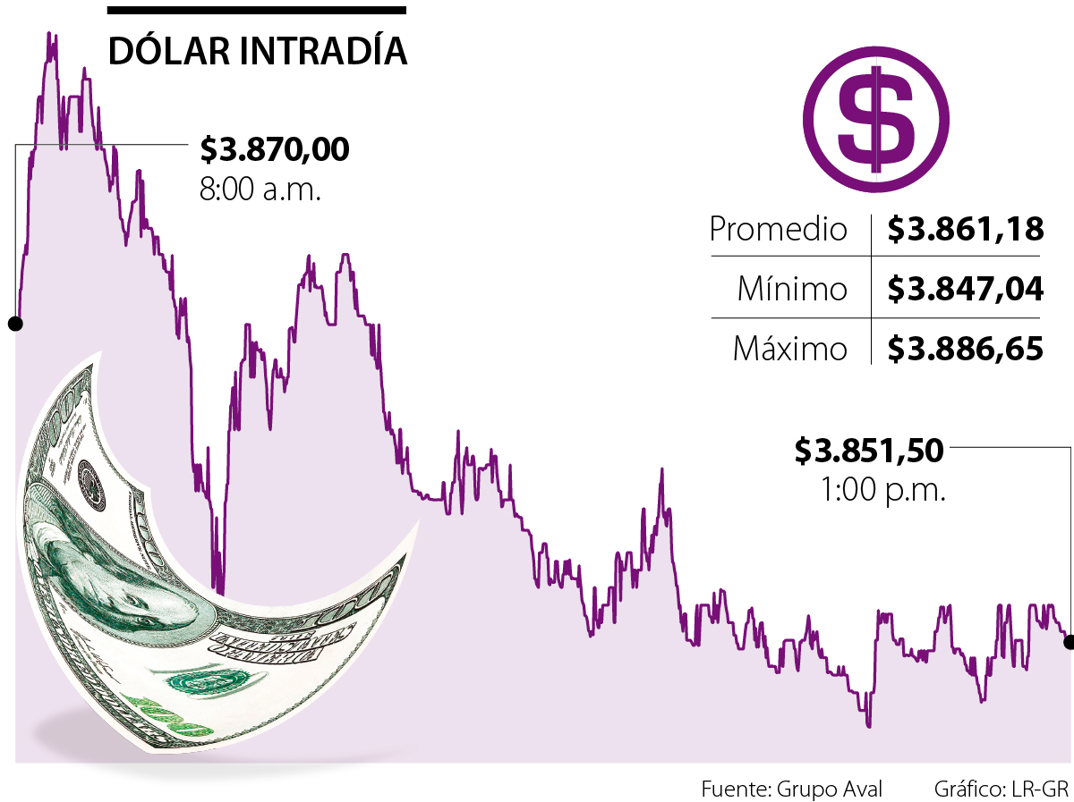 Ayer, el dólar cerró a $3.861,18 en promedio, lo cual representó una caída de $7,23 frente a la Tasa Representativa del Mercado (TRM), que para la jornada se ubicó en $3.868,41.