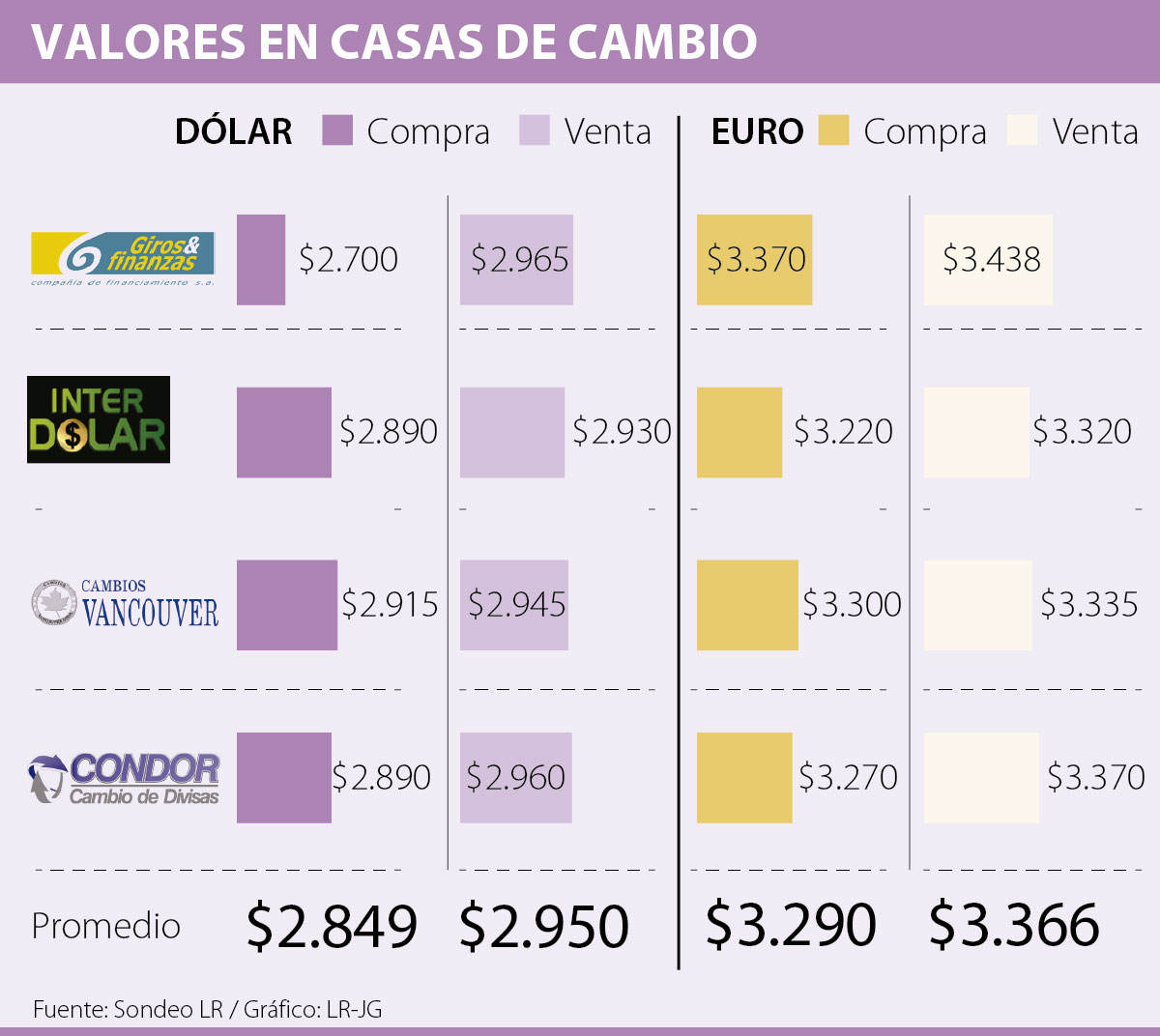 Para efectos de compra de la moneda comunitaria, el precio promedio que se pagará es de $3.290, y será Giros & Finanzas la que pagará más, al ofrecer $3.370 por cada unidad, $120 por arriba del mercado.
