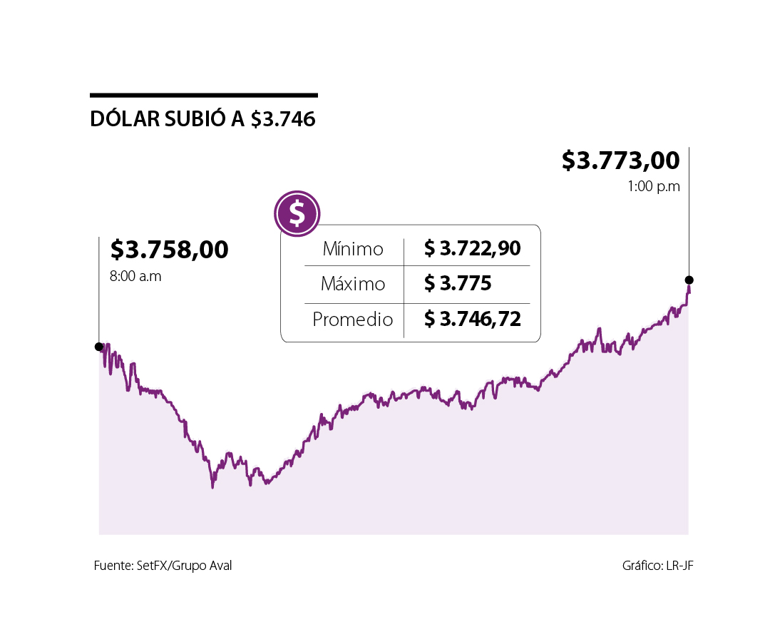 El dólar continúa su recuperación y, con un alza intradía de $71,91, se cotizó en promedio a $3.746,72, para completar un aumento de $181 en lo que va de esta semana.