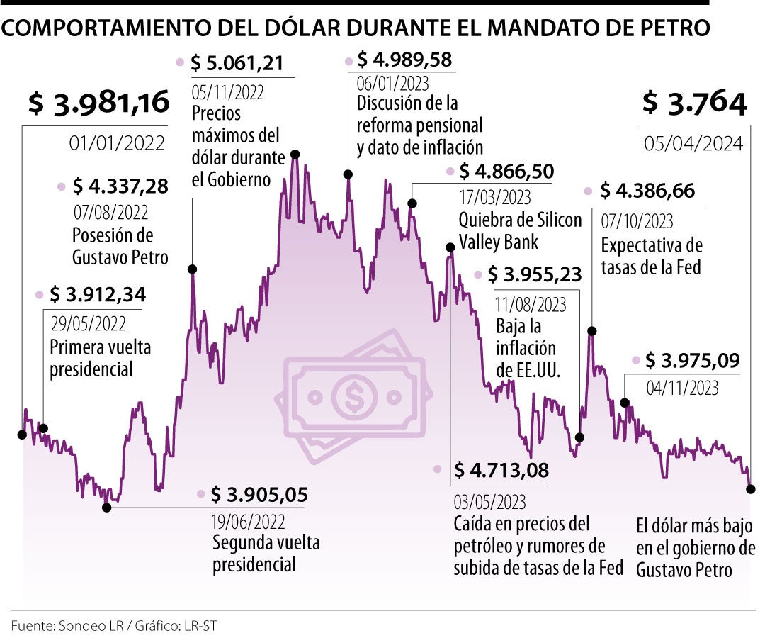 El precio del dólar continúa abajo de $3.800, luego de que la semana pasada alcanzara mínimos que no se veían desde abril de 2022 y marcara el nivel más bajo desde que el presidente Gustavo Petro llegó a la Presidencia. Esta semana, los analistas estarán atentos al dato de inflación de Estados Unidos, que dará más pistas sobre el rumbo de la política monetaria de la Reserva Federal, Fed.
