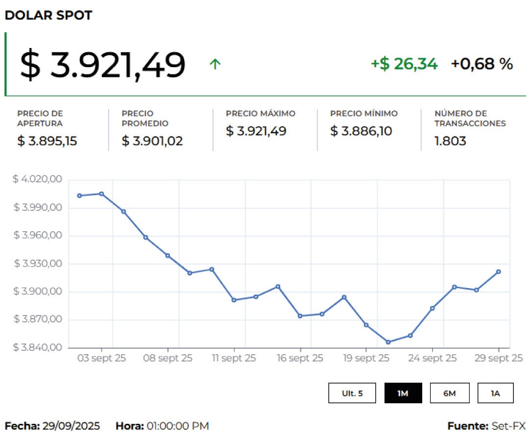 La divisa registró un precio mínimo de $3.907,77 y un máximo de $3.939.19, con 1.890 transacciones por US$1.209 millones