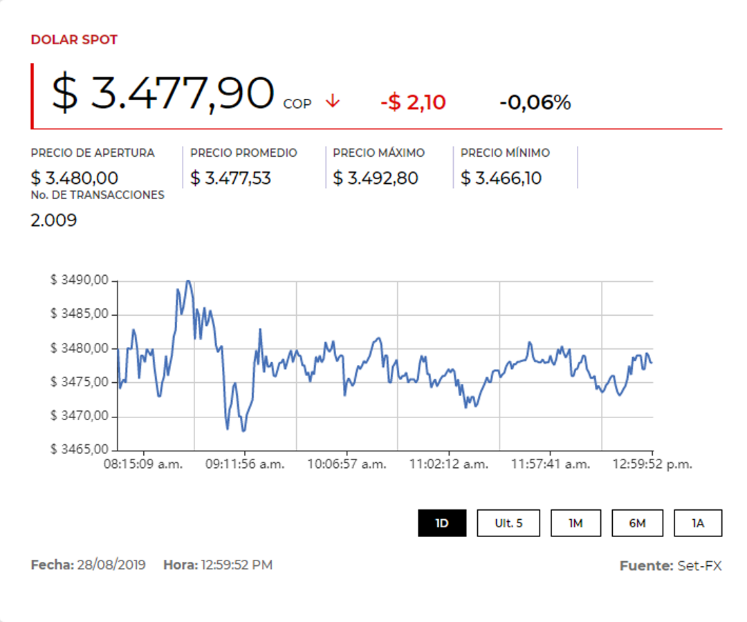 Ese valor implica que la depreciación de la moneda llegó a 17,2% en el último año (el 29 de agosto del año pasado la TRM estaba en $2.966); desde el primero de enero (TRM en $3.249,75) la pérdida de valor del peso ha sido de 7,01% y nada más desde el primero de agosto la cifra de devaluación ha sido de 5,6%.