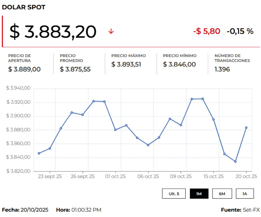 La divisa cerró la jornada al alza en $3.901,15 lo que representó un ascenso de $24,15 frente a la Tasa Representativa del Mercado, TRM, que para hoy se ubicó en $3.876,60. Además, la moneda registró un precio mínimo de $3.877 y un máximo de $3.923,40 con 1.809 transacciones por un monto de US$1.199 millones.