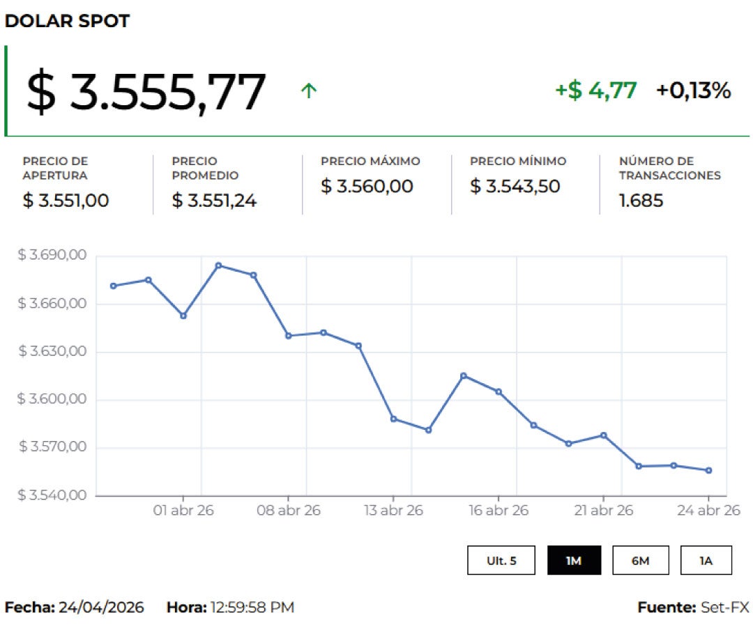 La divisa opera en $3.570,60, lo que representa un aumento de $19,43 frente a la Tasa Representativa del Mercado, TRM, que para hoy se ubica en $3.551,17. La jornada tiene un mínimo de $3.550 y un máximo de $3.596,96. En este momento se han dado 941 transacciones por US$552 millones.