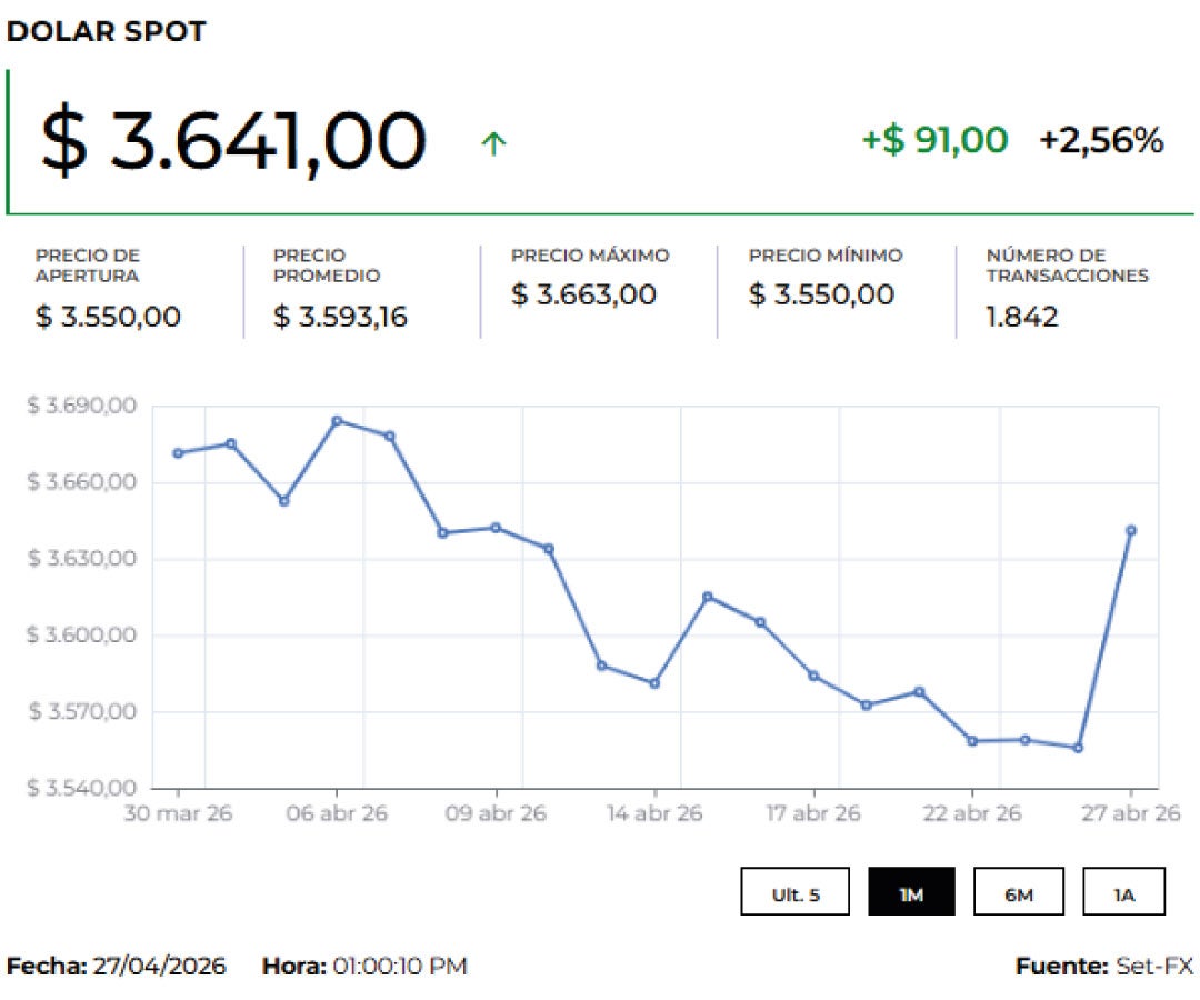 El dólar cotiza al alza y tocó niveles no vistos desde hace dos semanas cuando se cotizó en $3.631,49, esto en un entorno en el que el carry trade sigue la pauta, flujos de inversionistas que entran a Colombia atraídos por las altas tasas del Banco de la República. Además, las encuestas siguen marcando como ganador al candidato Iván Cepeda. De hecho, durante la primera jornada de la semana, los títulos TES se desvalorizaron a medida que aumentó la incertidumbre electoral.