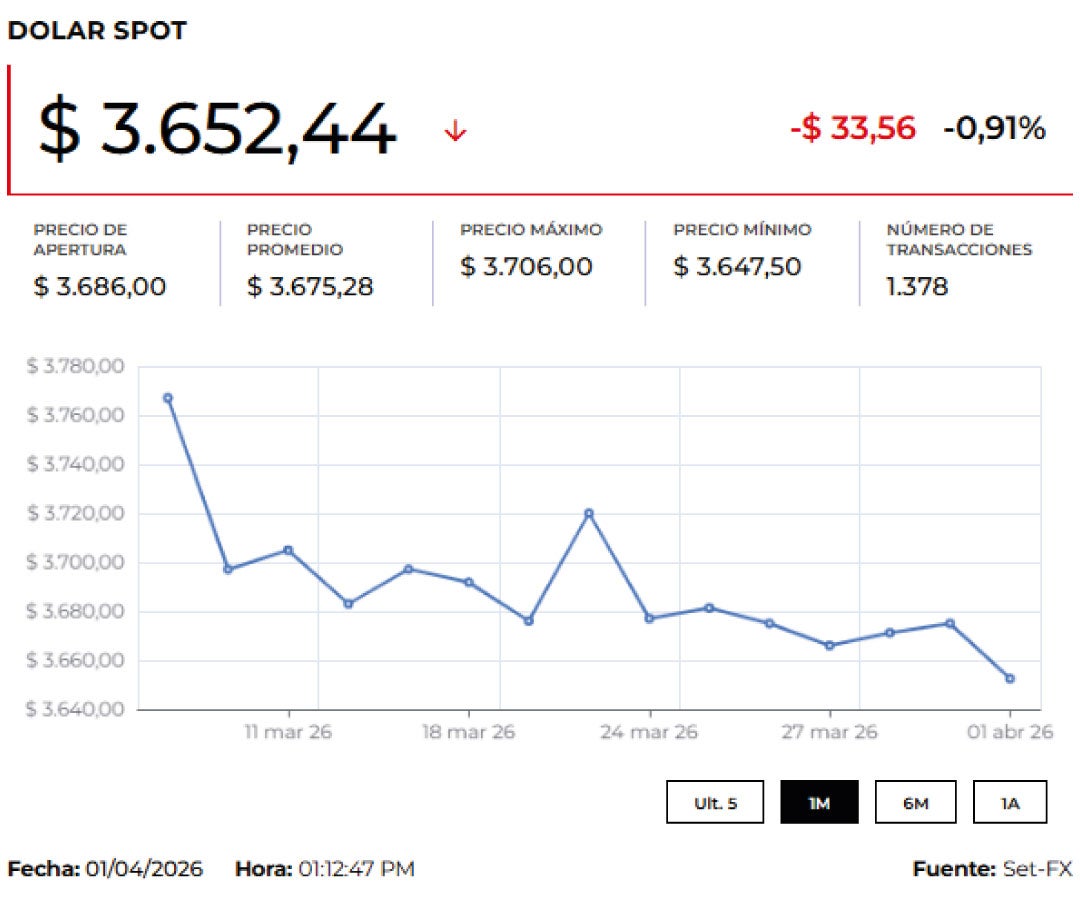 El dólar abrió la jornada a la baja sobre $3.645, lo que representó una caída de $30,81 frente a la Tasa Representativa del Mercado, TRM, que para hoy se ubicó en $3.675,81. Abrió con un mínimo de $3.640 y un máximo de $3.645; se han realizado 3 movimientos por un valor de US$750.000.