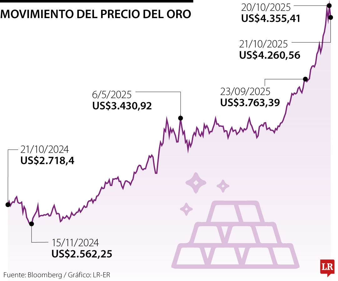 Los precios del oro acumulan un alza cercana 57% este año, alcanzando un máximo histórico de US$4.381,21 el lunes, reforzados por las incertidumbres geopolíticas y económicas, las apuestas de recorte de tasas de interés y la compra sostenida de los bancos centrales.