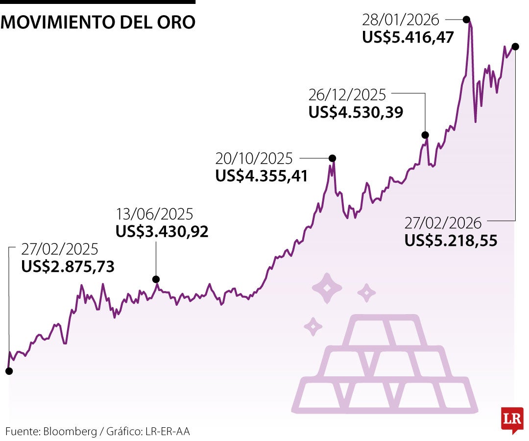 El oro al contado cotizaba estable en $US5.185,54 la onza. El metal ha subido 6,5% en lo que va de febrero, lo que eleva sus ganancias en siete meses 58%. Los futuros del oro estadounidense para entrega en abril subían 0,1%, a $US5.201,70.