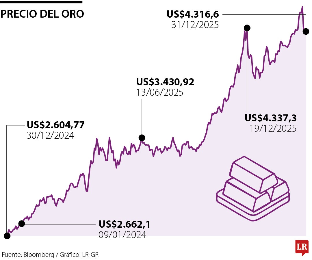 El lingote ha subido más de 60% en 2025, su mayor avance anual desde 1979, cuando factores geopolíticos, como la revolución iraní, impulsaron los precios al alza.