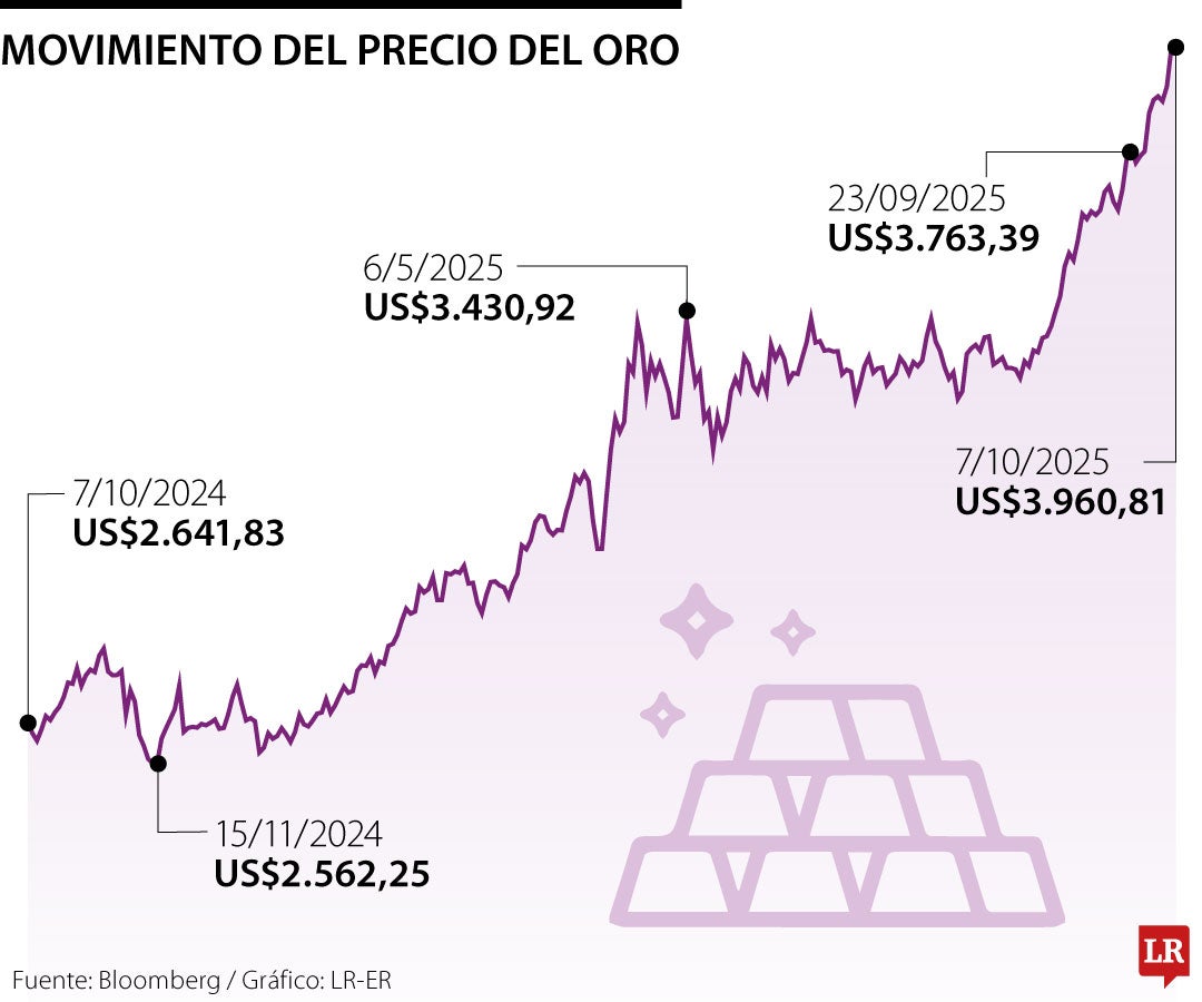 El oro superó por primera vez los US$4.000 la onza el miércoles, con los inversores volcándose al activo de refugio para protegerse de la incertidumbre económica y geopolítica mundial, al tiempo que apostaban por una baja de las tasas de interés en Estados Unidos.