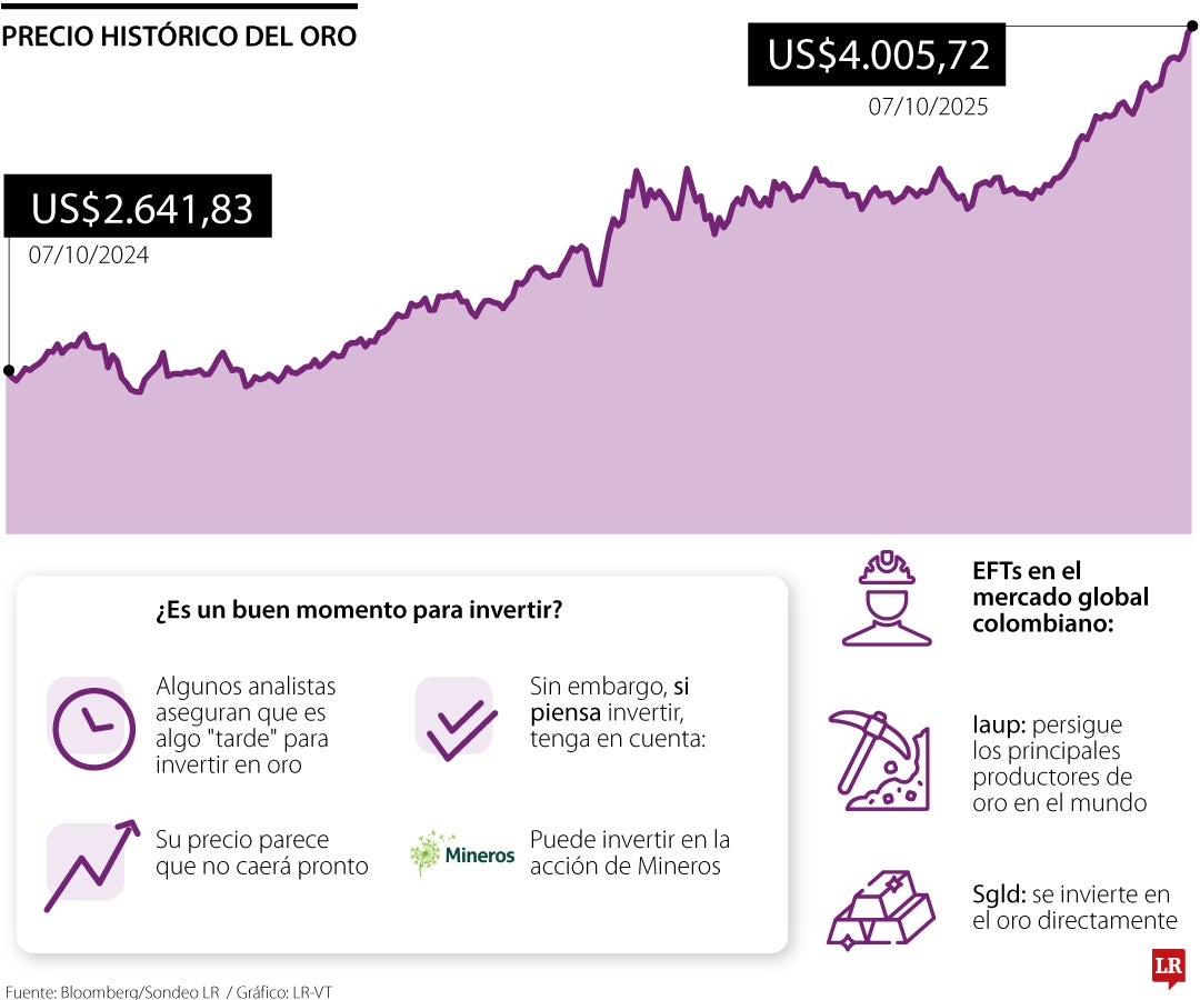 El oro al contado XAU= subía 1,3% a US$4.034,59 por onza. Los futuros del oro estadounidense para entrega en diciembre ganaban 1,3% a US$4.056,80