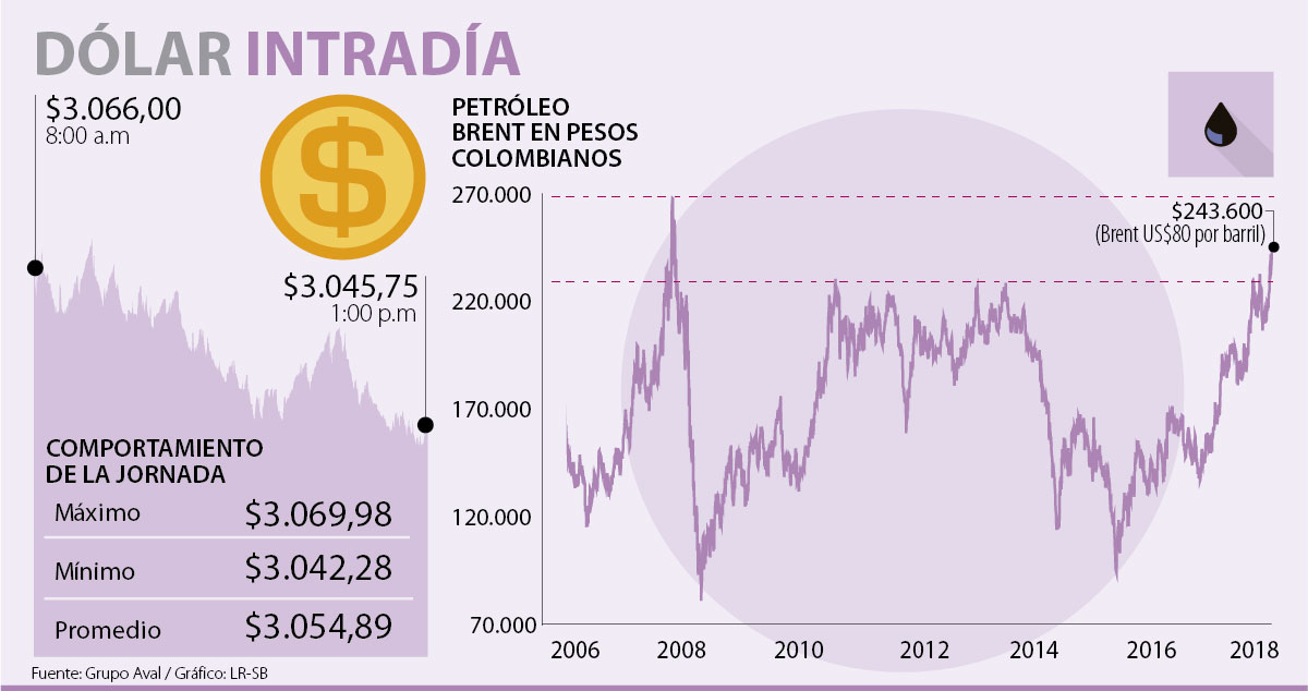 La pérdida de la correlación inversa entre los precios del petróleo y la cotización del dólar localmente este año ha hecho que con un alza de ambos el precio del barril de crudo Brent en Colombia llegue a sus máximos de la última década.