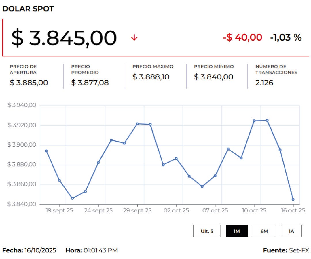 En Colombia, el dólar cierra la jornada a la baja en $3.808,6, lo que representó un descenso de $69 frente a la Tasa Representativa del Mercado, TRM, certificada en $3.877,07. Además, la divisa registró un precio mínimo de $3.765 y un máximo de $3.835 con 2.283 transacciones por un monto de US$1.5 billones.