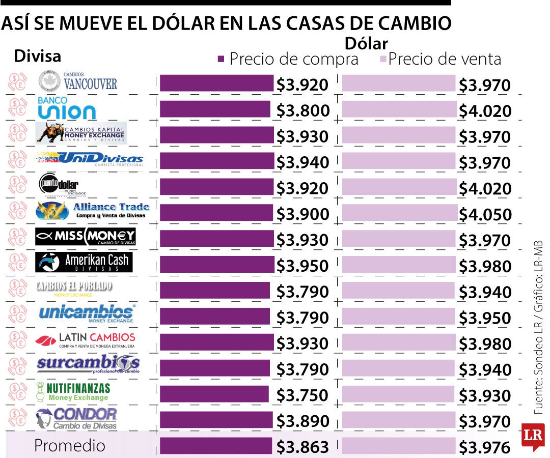 En Colombia, la negociación del dólar cerró la jornada a la baja en $3.890,99, lo que representó una caída de de $1,46 frente a la Tasa Representativa del Mercado, TRM, certificada en $3.892,45. Además, la divisa tuvo un precio mínimo de $3.860 y un máximo de $3.912., con 2.050 transacciones por un monto de US$1.304 millones.