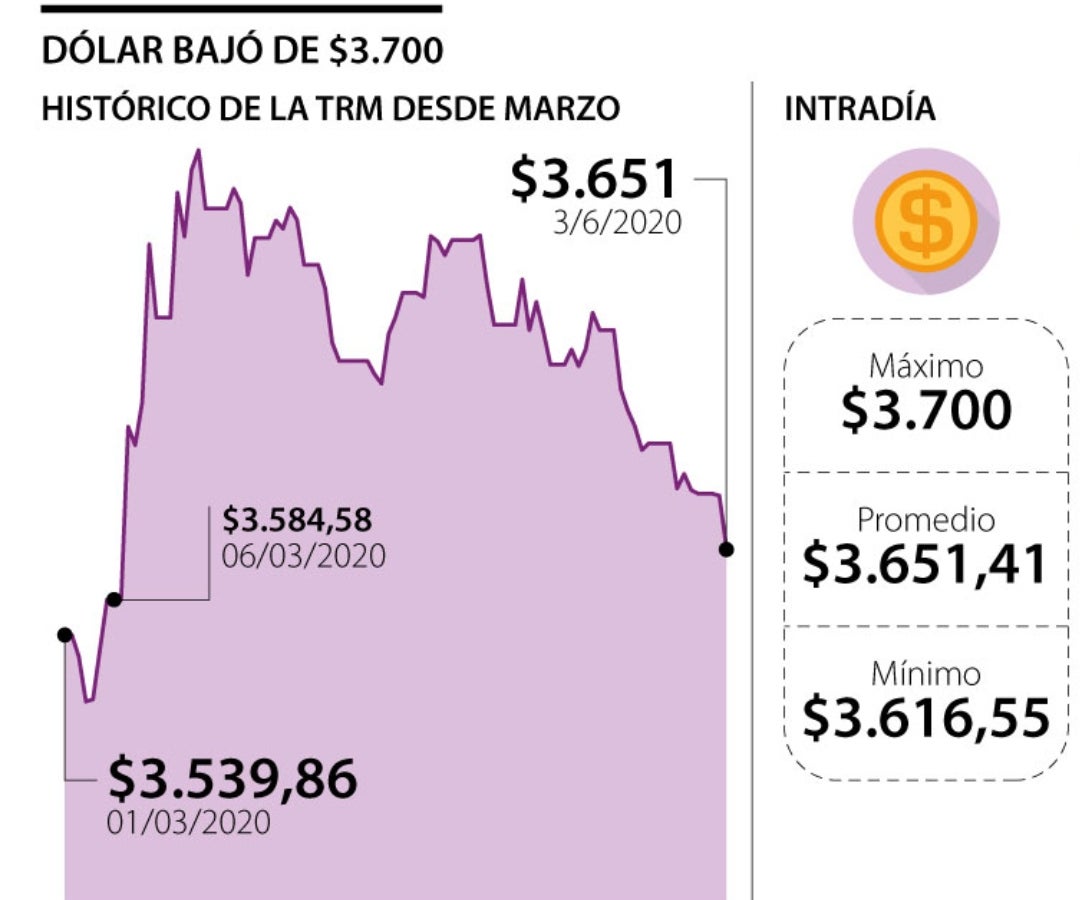 Este miércoles, el dólar registró un precio promedio de negociación de $3.589,08, lo que representó una baja de $62,34 frente a la Tasa Representativa del Mercado (TRM), que se ubica para hoy en $3.651,42.
