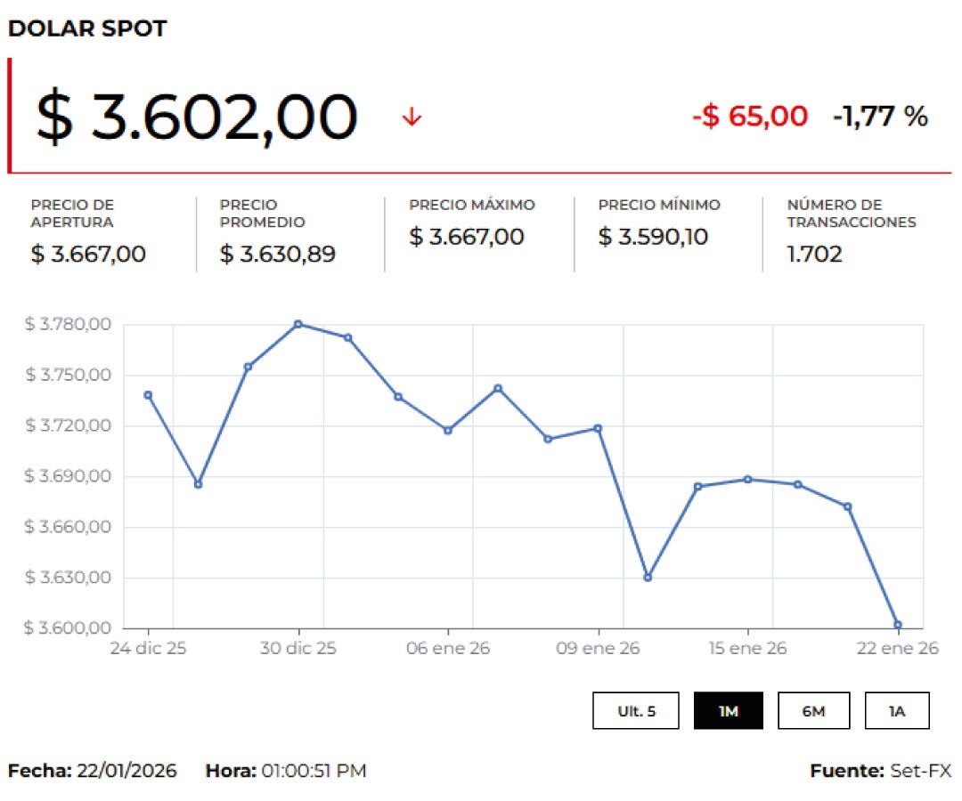 El dólar cerró la semana con fuertes retrocesos a nivel global, una tendencia que ha seguido presionando a la baja a las monedas de la región. En Colombia, la divisa se acerca al piso de $3.600, un nivel que abre espacio para una posible búsqueda de los $3.590, zona visitada por última vez en abril de 2021.