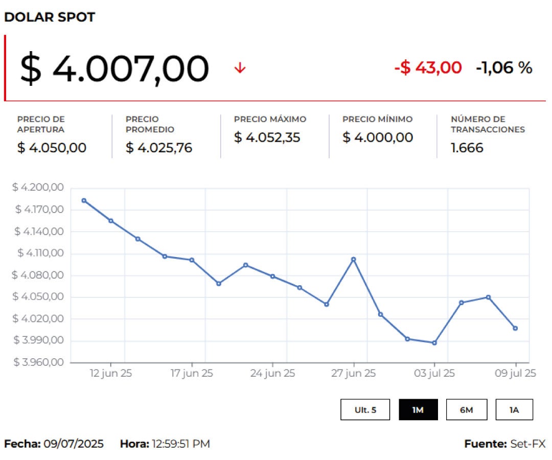 El dólar cerró la jornada a la baja al negociarse en $4.013,52, lo que representó una reducción de $12,57 frente a la TRM certificada para la jornada de $4.026,09. Al cierre de la jornada se registraron 2,389 transacciones por un monto de US$1,403 millones.