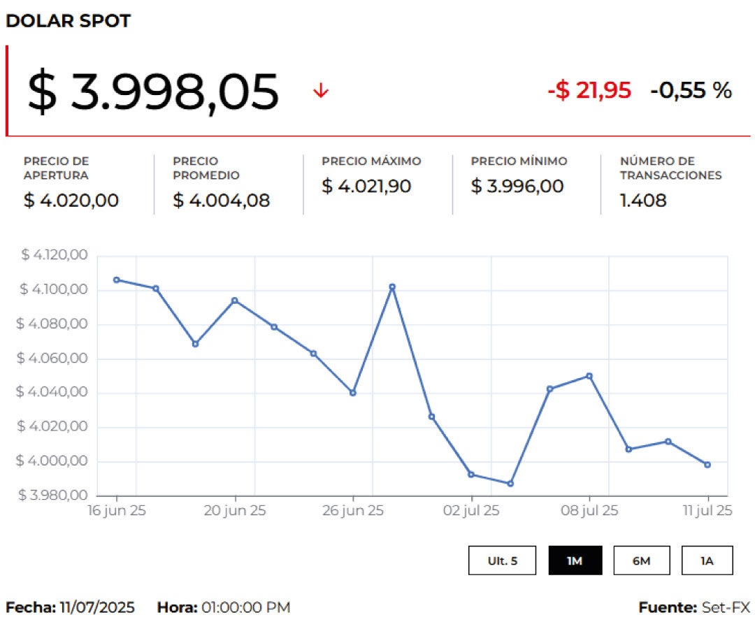 Al inicio de la jornada se registró un precio mínimo de $3.998 y un máximo de $4.028,65 en 1.485 operaciones por un monto de US$1.039,9 millones.