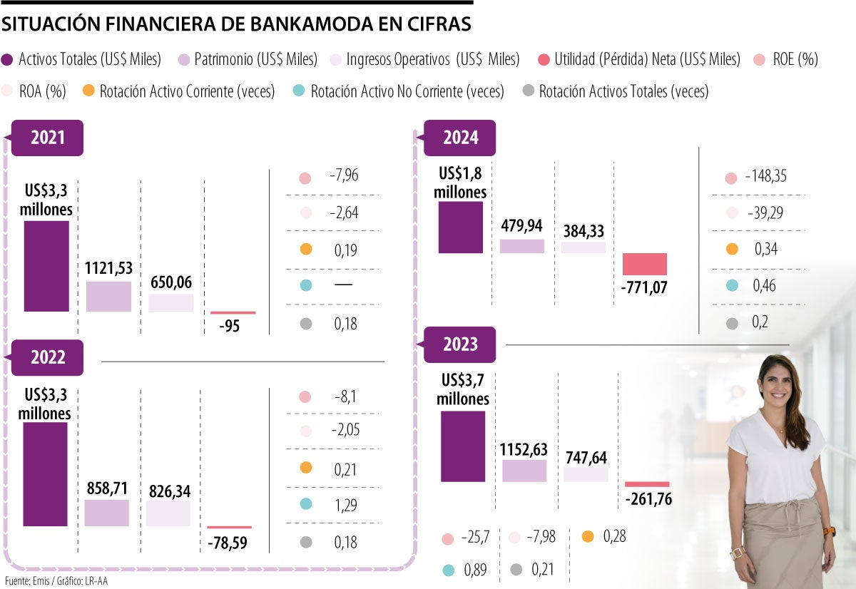 El cambio de rumbo se da en un momento crítico para las finanzas de la firma. Entre 2021 y 2024, los activos de Bankamoda cayeron de US$3,3 millones a US$1,8 millones, una reducción cercana a 47%. En el mismo periodo, los ingresos operativos descendieron de US$650.000 a US$384.000.