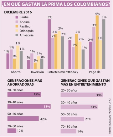 Este mes habrá movimientos por $6 billones en primas, y muchas veces ese dinero extra se hace plata de bolsillo. Una encuesta realizada por la consultora BuscaData encontró que hace un año los colombianos gastaron su prima decembrina principalmente en pago de deudas, entretenimiento, y compra de moda o tecnología.
