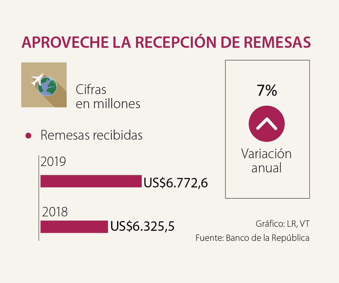 Según las cifras más recientes del Banco de la República, en 2019, los colombianos recibieron US$6.772 millones en remesas, un aumento anual de 7%.