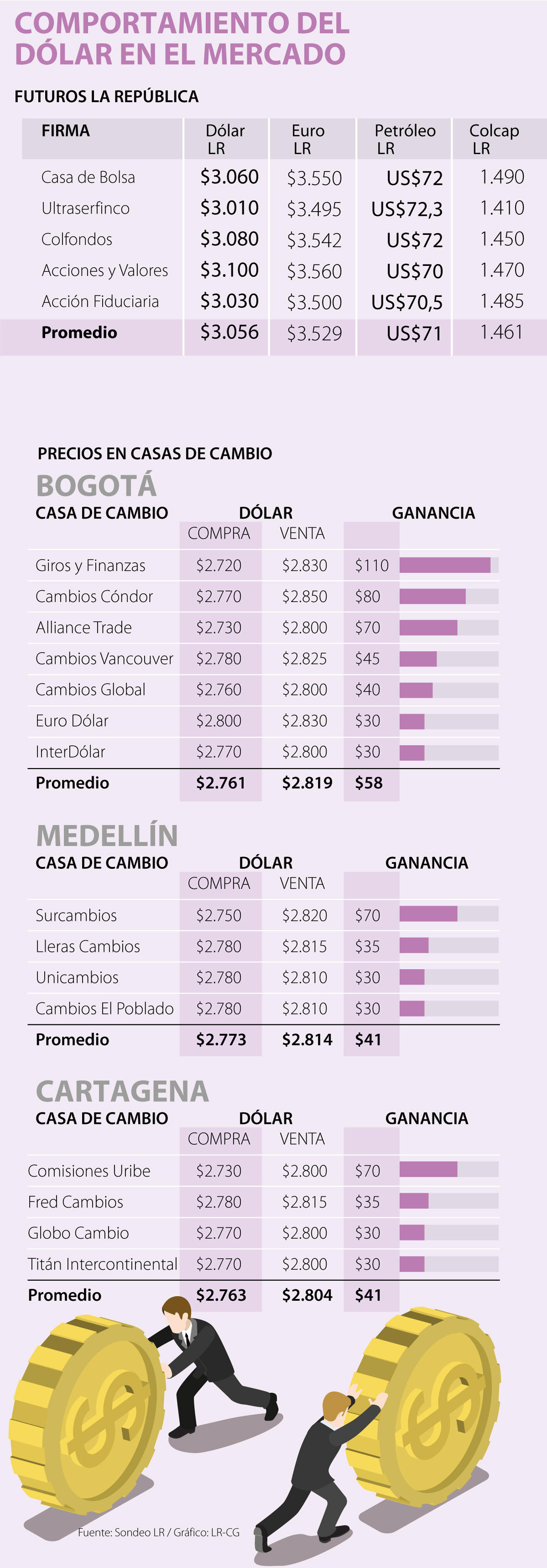 Este dato surge de calcular los promedios en tres de las principales ciudades: Bogotá, Medellín y Cartagena; siendo la capital en donde los cambistas logran mejores ganancias al obtener $58 de diferencia.