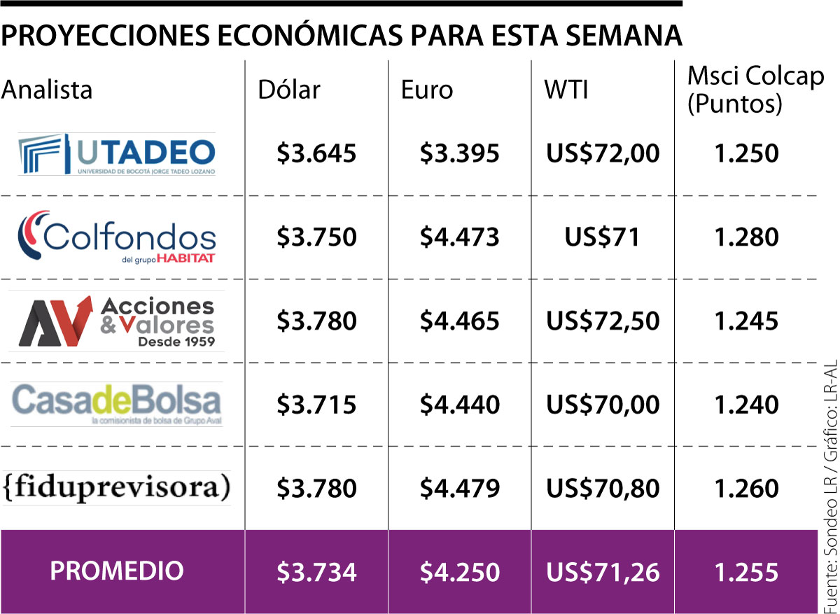 Se espera que el barril de petróleo WTI llegué a US71,26, mientras que el euro se cotizará a $4.250 y el Msci Colcap a 1.255 puntos