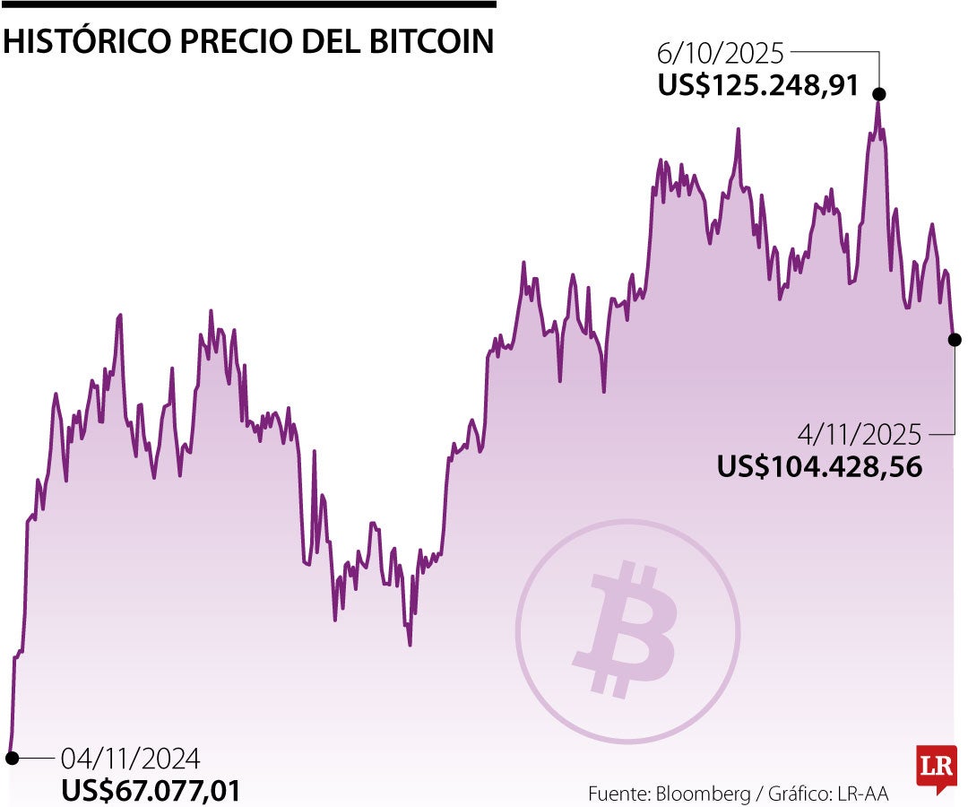 El precio de la criptomoneda cayó hasta 3,1 % a US$103.578, acercándose a un precio por debajo del mínimo del 17 de octubre
