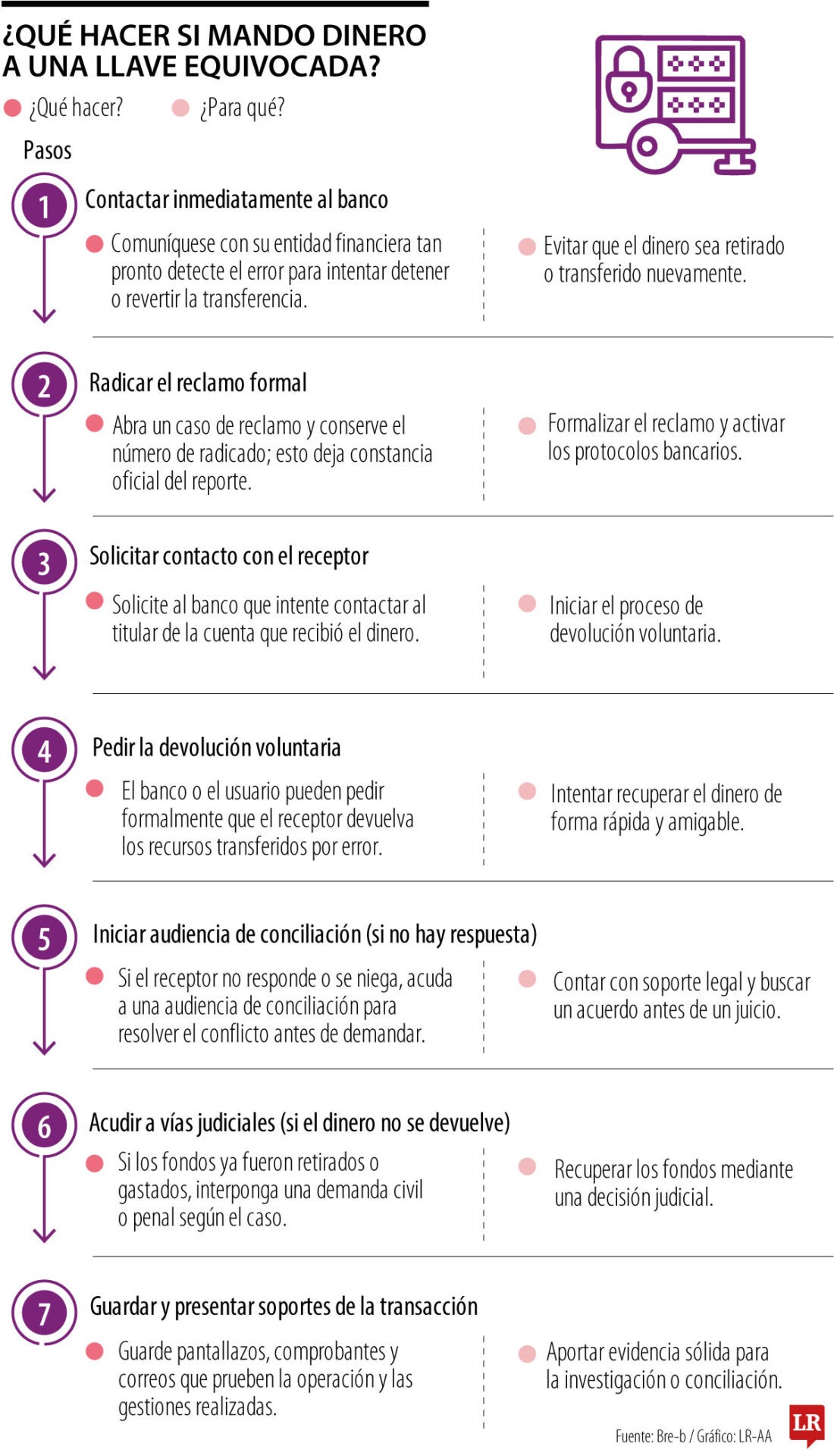 Con millones de llaves registradas y un creciente uso del sistema Bre-B, los errores al digitar una cuenta o identificador no son raros. Cuando una persona transfiere dinero a la llave equivocada, la recuperación de esos fondos no es automática: depende de la rapidez con que actúe el usuario y de los protocolos que aplican las entidades financieras.