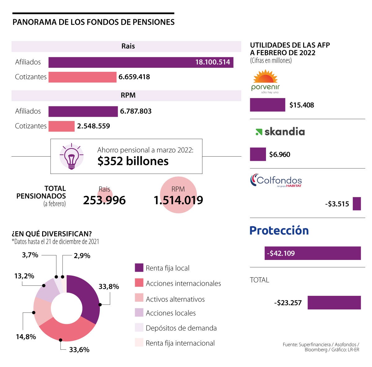 La Superintendencia Financiera de Colombia (SFC) reportó que al cierre de febrero de 2022, 24,8 millones de personas estaban afiliadas al régimen pensional colombiano, de los cuales 18,1 millones pertenecían al Régimen de Ahorro Individual con Solidaridad (Rais) y 6,78 millones en el Régimen de Prima Media (RPM).