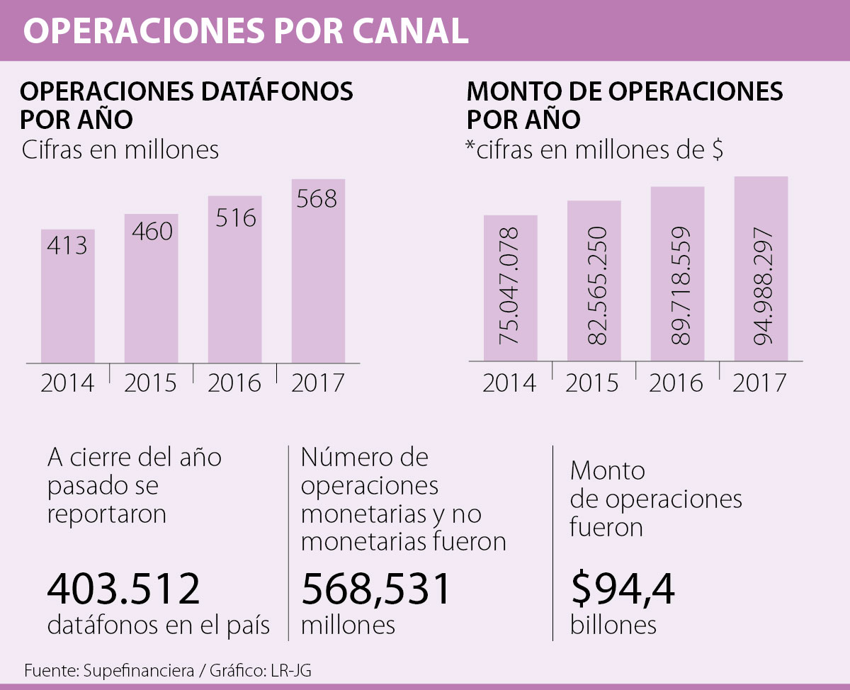 Estas inversiones han venido dando resultados y, por ejemplo, las transacciones a través de datáfono, entre 2016 y 2017, pasaron de 516 millones a 568 millones. Hoy las proyecciones indican que los pagos por este medio crecerán por encima de 10% quitándole espacio al efectivo.