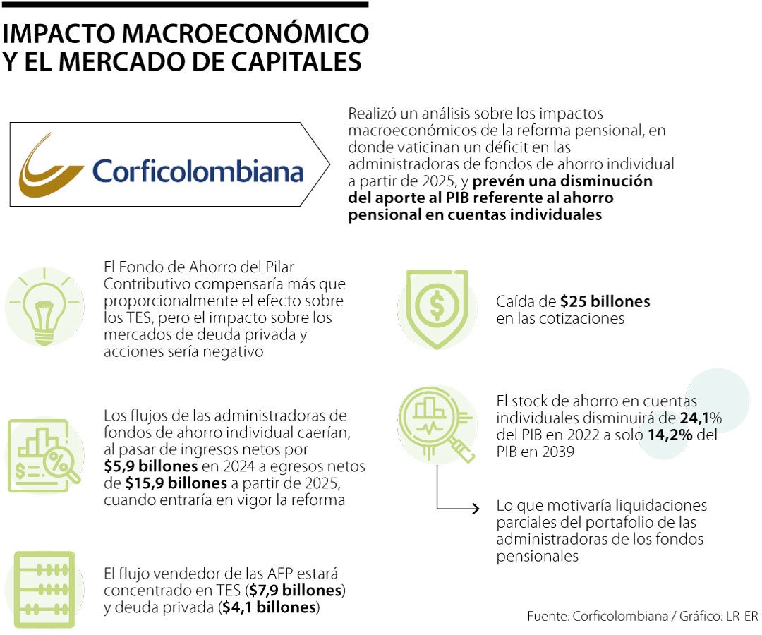 Si uno hace las cuentas de cuánto ahorro podría tener el Gobierno pasando las cotizaciones de los fondos de pensiones sobre tres salarios mínimos a Colpensiones, la plata no alcanza, no se ahorra. El Gobierno tendría que seguir pasando $8 billones por año a Colpensiones y esto no lo decimos solo nosotros, lo dice Ricardo Bonilla (presidente de Findeter). Las intenciones son buenas, pero eso destruye el ahorro de la economía. Y eso afecta a las generaciones jóvenes.