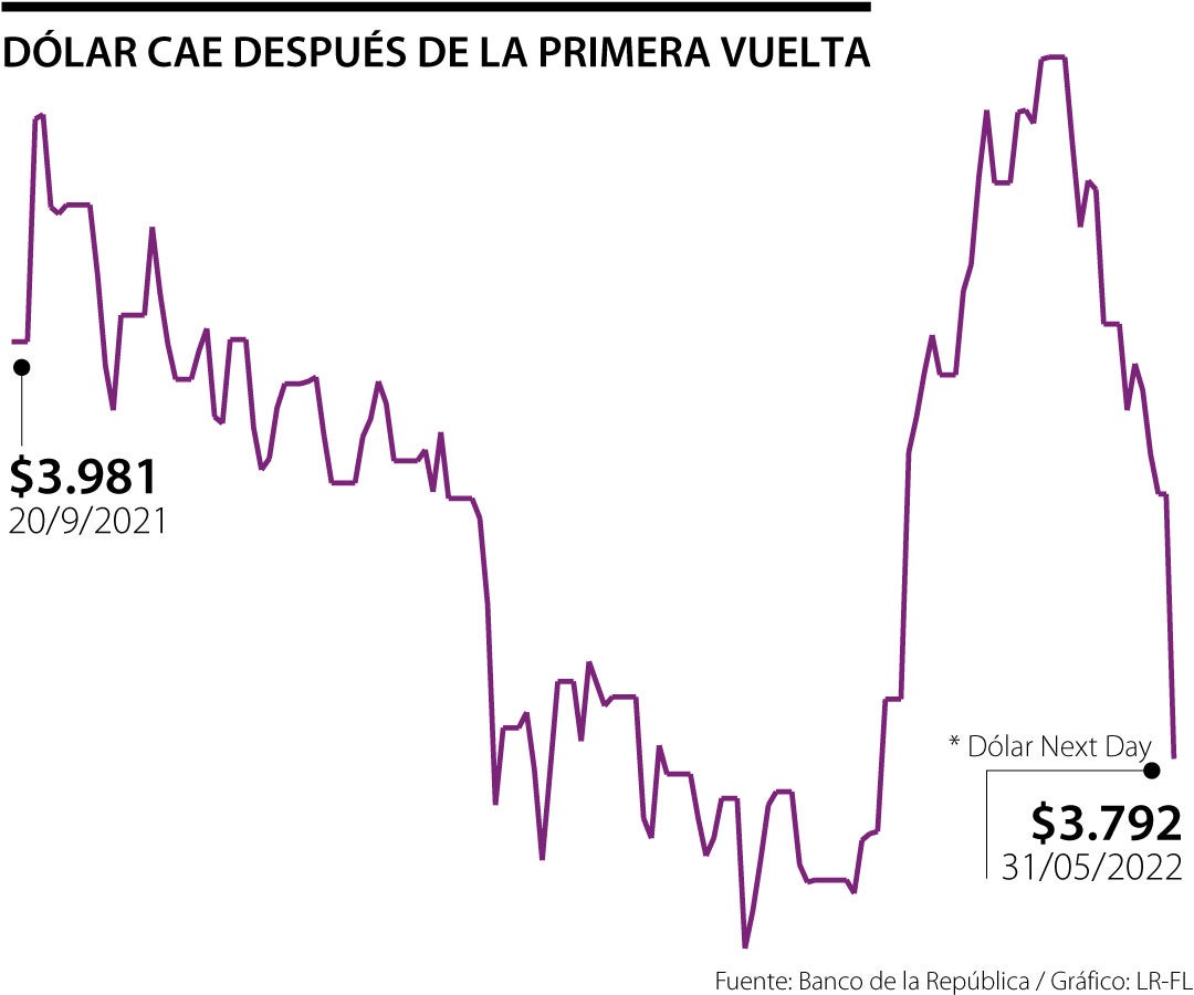 Un día después de las elecciones presidenciales en la primera vuelta, el dólar en la modalidad Next-Day cayó en Colombia $134 hasta $3.792. Sin embargo, los comicios no fueron la única causa de la caída de la cotización, también incidió el alza del petróleo Brent que superó los US$120 el barril.