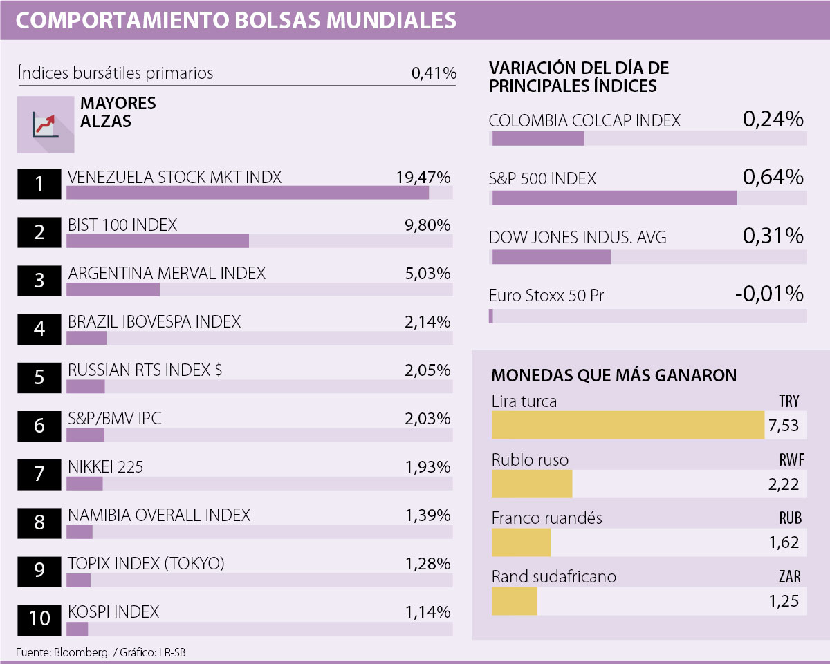 Luego de ser la principal afectada de las caídas registradas durante la jornada del lunes, la bolsa turca tuvo una recuperación de 9,80%, gracias a las medidas que señaló tomaría el Banco Central del país. Estos anuncios permitieron estabilizar gran parte de los índices del mundo, incluidos la bolsa estadounidense y colombiana.