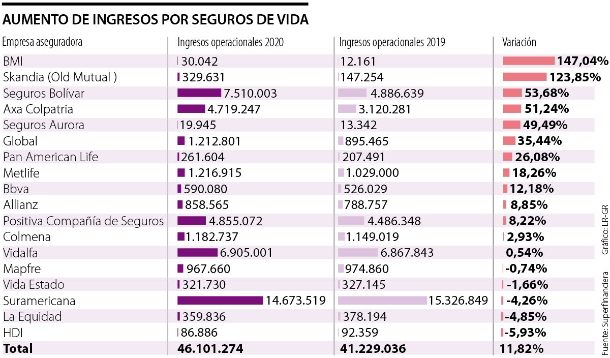 Con corte de noviembre de 2020, los seguros de vida facturaron $46,1 billones, un incremento de 11,82% frente al mismo periodo del año anterior