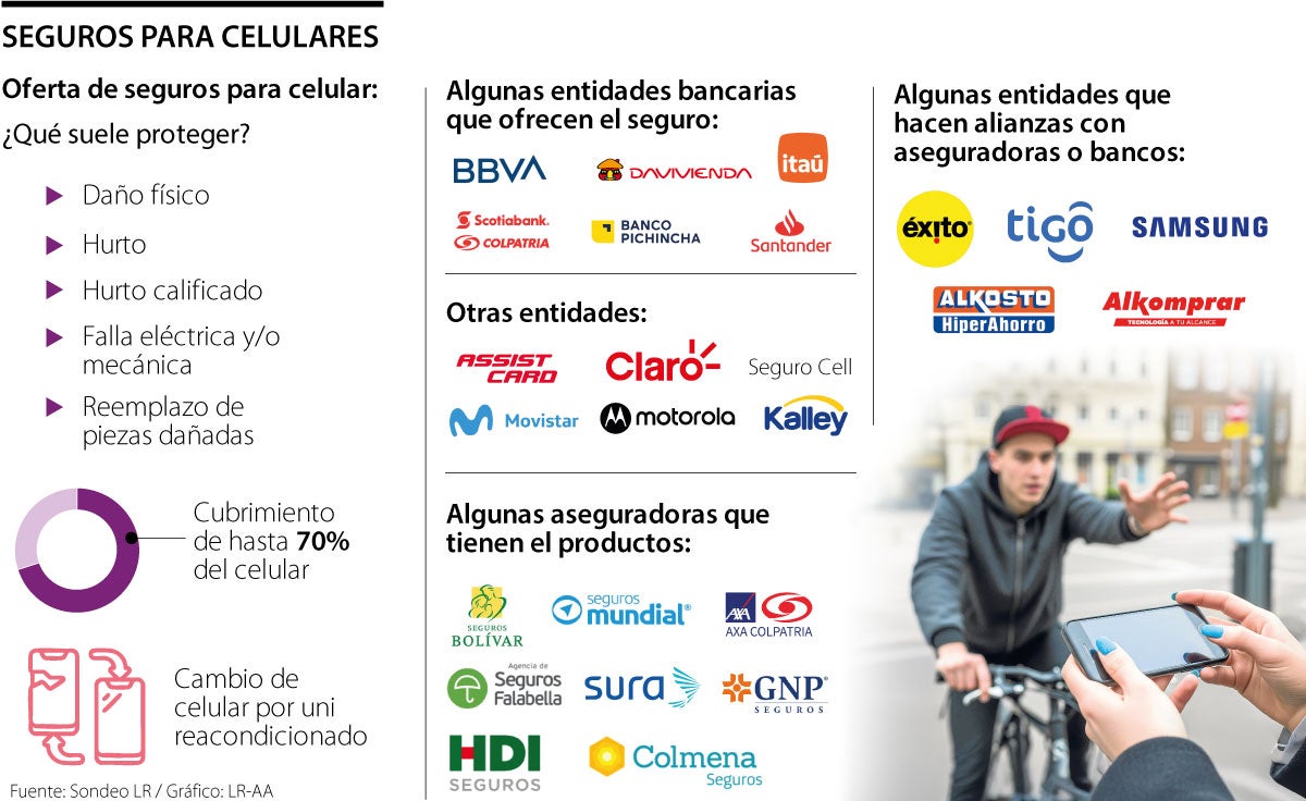 Entidades como Assit Card, Claro, Movistar, Seguro Cell, Motorola y Kalley también cuentan con sus propios seguros para sus clientes.