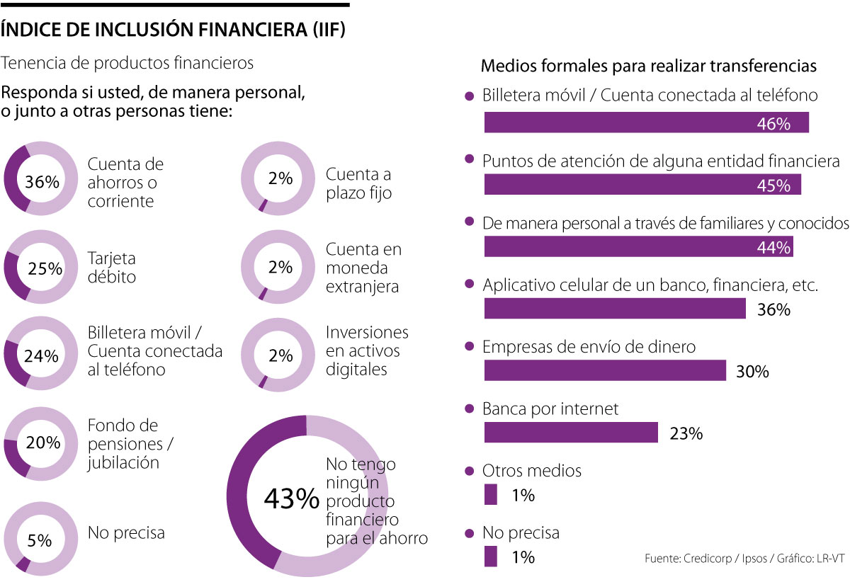 De acuerdo con el más reciente Índice de Inclusión Financiera del Grupo Credicorp, Colombia destaca en este tema a nivel regional, pues su puntaje (38,3) es igual al promedio de los siete países (Bolivia, Chile, Colombia, Ecuador, México, Panamá y Perú) que participaron en el estudio. Aunque el dato es muestra de que se han dado avances para la inclusión financiera y la bancarización, aún hay cifras preocupantes en cuanto al uso de productos.