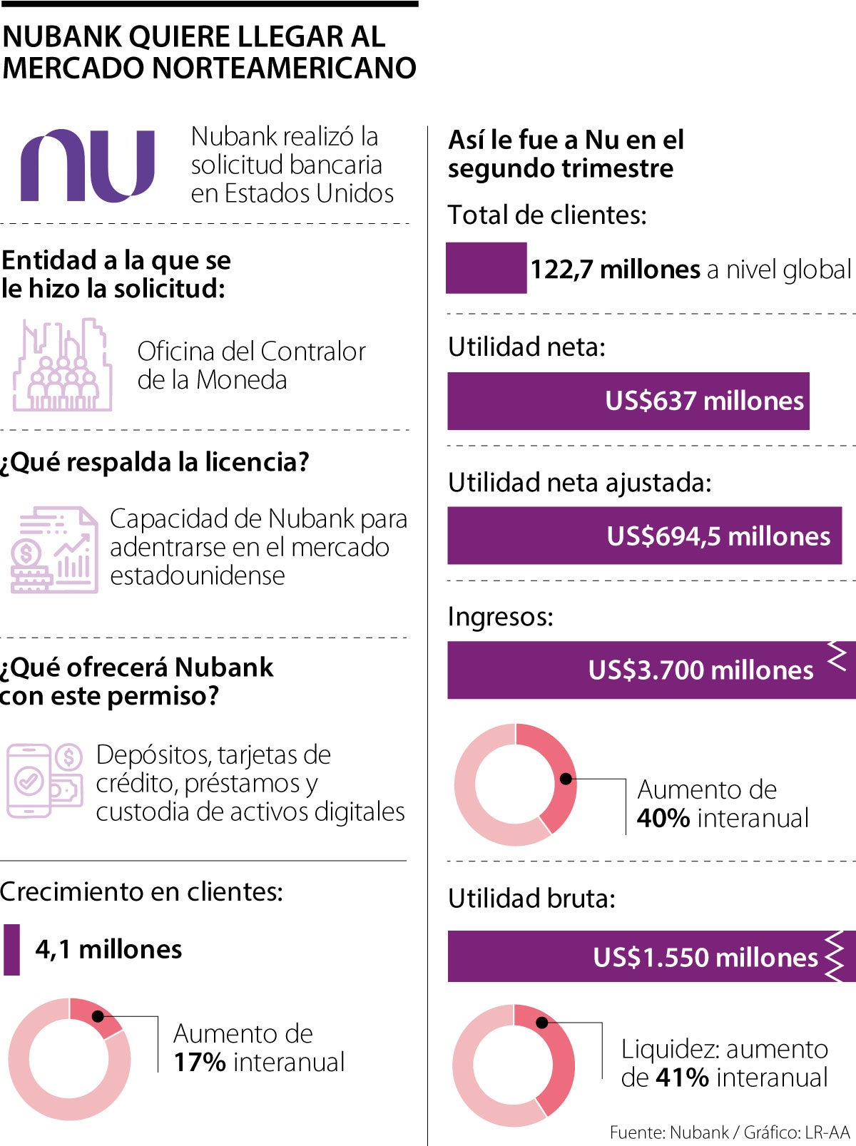 Nubank anunció que solicitó una licencia bancaria en Estados Unidos para impulsar su plataforma digital “más allá de América Latina”. Este paso es apenas una etapa de preparación para el proyecto futuro de llegar al mercado norteamericano con productos como cuentas de depósito, tarjetas de crédito, préstamos y custodia de activos digitales.