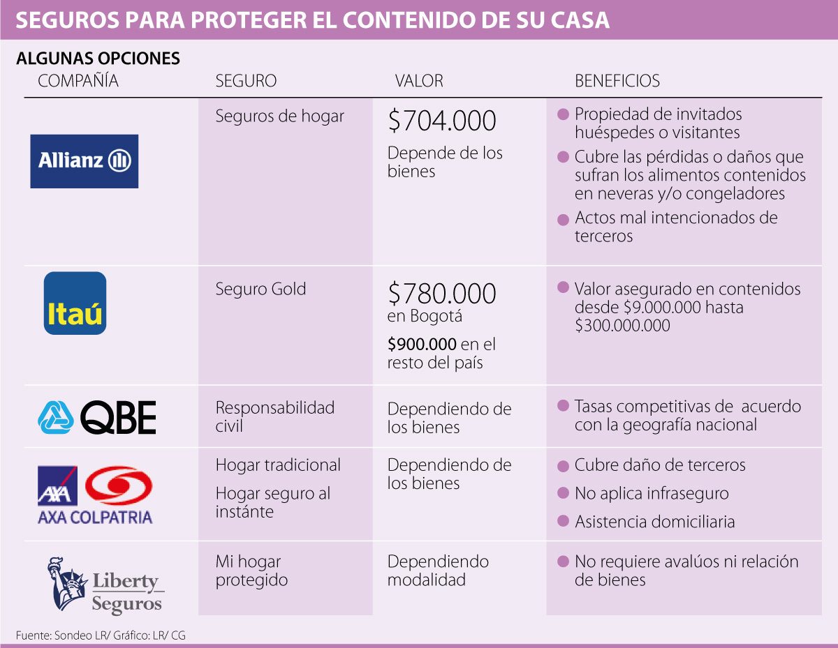 El aumento en la compra de productos de cada vez mayor valor económico en los hogares colombianos, como televisores, electrodomésticos y demás tipos de bienes, ha traído consigo diferentes necesidades de aseguramiento. Es así como la oferta del sector asegurador incluye en sus productos la posibilidad de proteger los bienes y contenidos de su casa, sin necesidad de pagar el aseguramiento de la infraestructura de la misma.