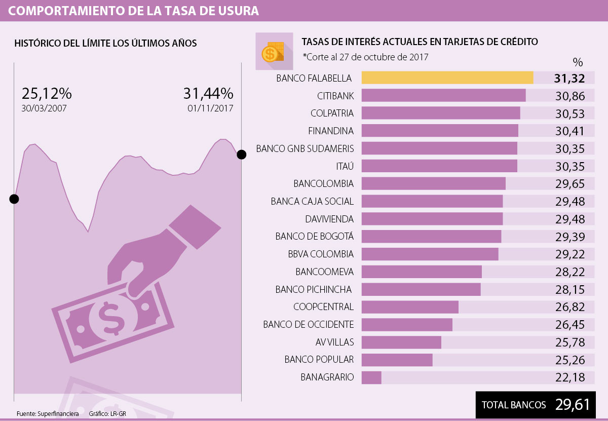 En este momento la tasa de usura está en 31,44% y mantiene las tasas de interés de los bancos en máximo este nivel.