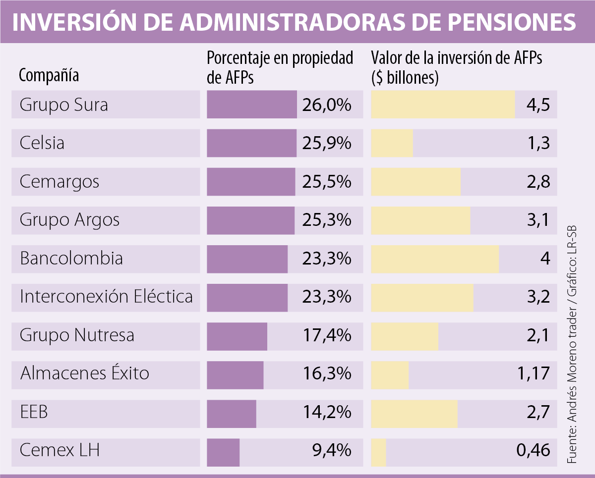 Precisamente el Grupo Sura con 26% de su porcentaje propiedad de administradoras de pensiones, es la compañía perteneciente a la BVC que mayor participación de inversión de estos fondos tiene, equivalente a $4,5 billones.