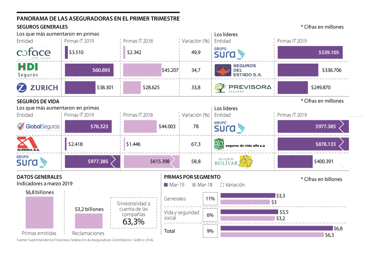 Las buenas notas se reportan tras alcanzar un acumulado de $6,8 billones en primas a marzo, cifra que es superior en $539.700 millones a la registrada en 2018 y en $2,4 billones frente a febrero de 2019.