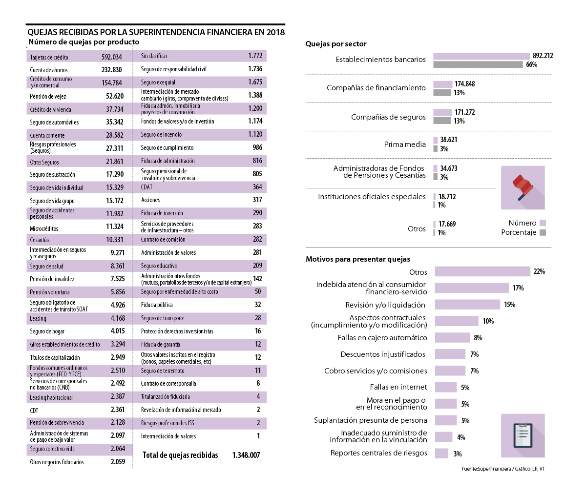 De acuerdo con la información disponible en el sitio web de la Superintendencia Financiera, el año pasado se recibieron en total 1,35 millones de reclamos. De estos, 43,92% (592.034) estaban relacionados con tarjetas de crédito, 17,27% (232.830) involucraban cuentas de ahorro y 11,48% (154.784) tenían que ver con crédito de consumo y/o comercial.