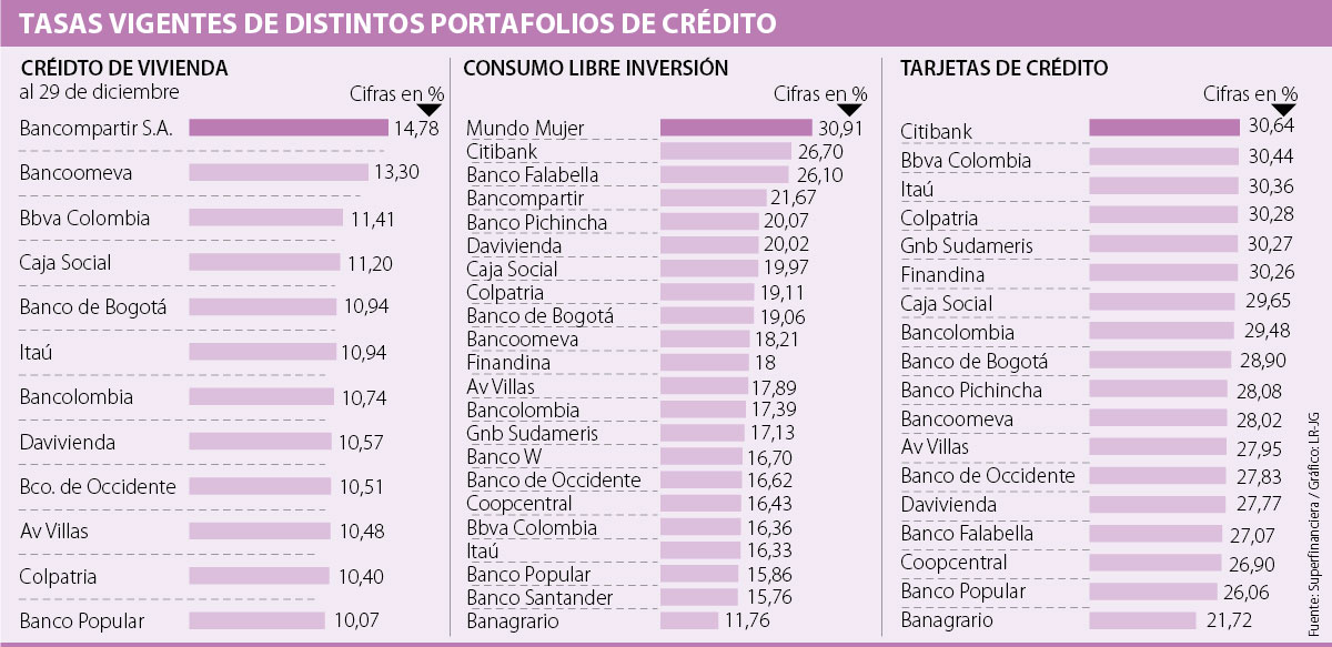 Los tipos más bajos son Banco Popular, con 15,86%, Itaú (16,33%) y Bbva (16,36%).