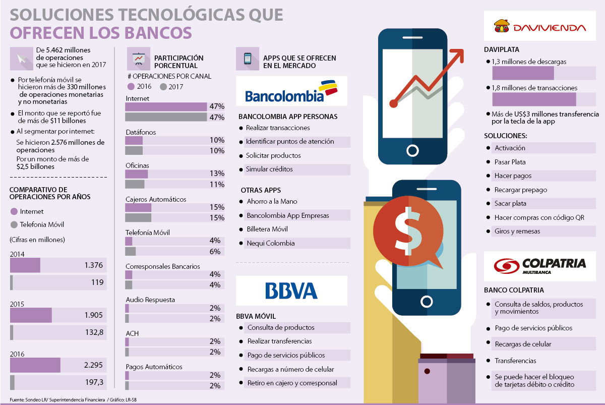 Y es que los bancos trabajan por lograr el objetivo que tiene el Gobierno de reducir el uso del efectivo en 8,5% para este año, y la meta la esperan conseguir, especialmente, por medio de nuevas actualizaciones en las aplicaciones bancarias en los smartphones. Este es el caso de Bancolombia, Bbva Colombia, Colpatria, Davivienda y otros bancos que han visto en las apps una oportunidad para crecer, y apostar por un nuevo público.