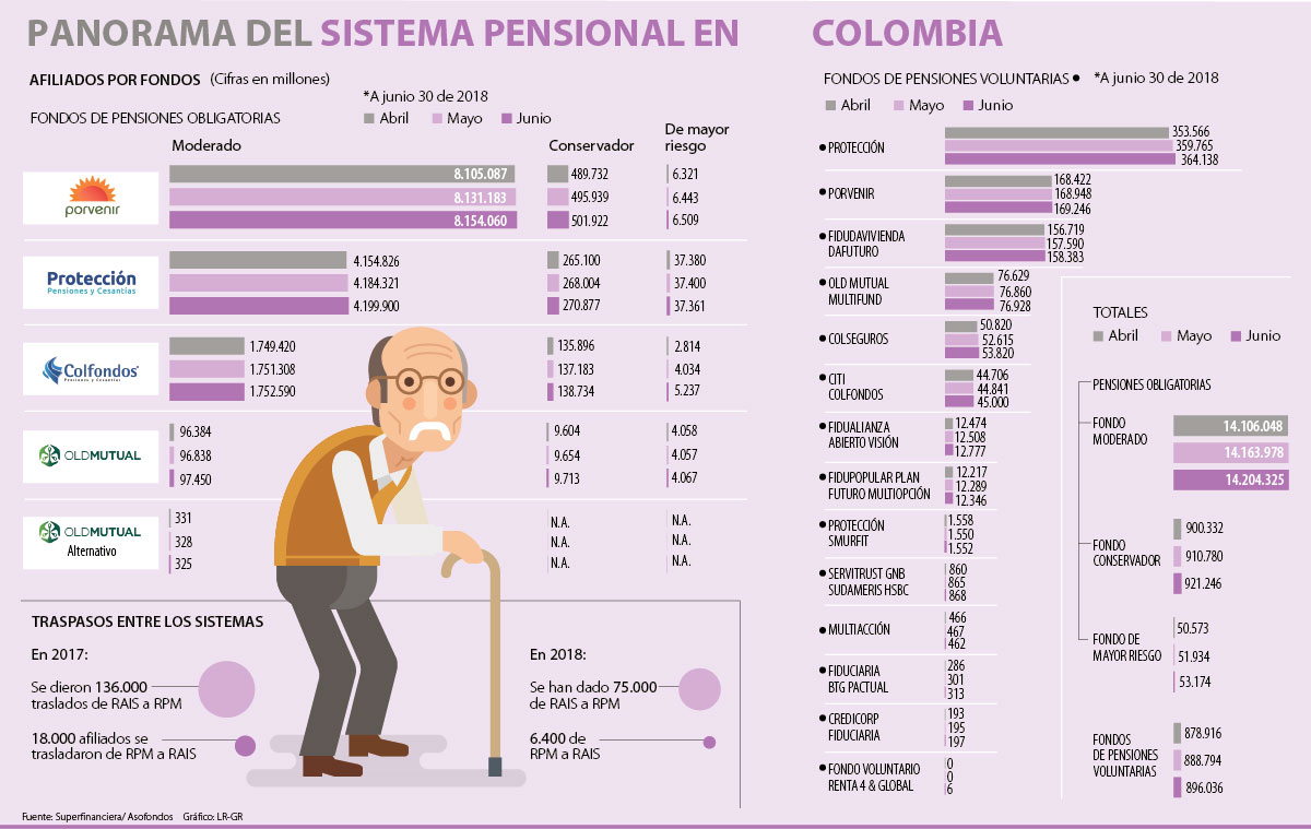 Los cotizantes en el país que están en fondos de pensiones obligatorios ya llegaron en junio a más de 14,2 millones en el fondo moderado, 921.246 en el conservador y a 53.174 en el de mayor riesgo, según los datos de la Superintendencia Financiera.