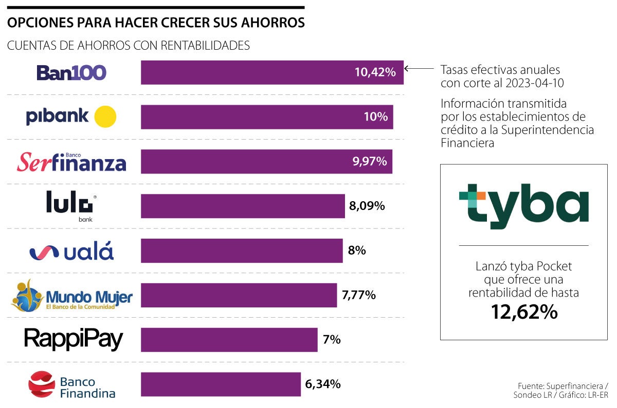 Cada vez más los colombianos tienen la alternativa de “poner a trabajar sus ahorros”, incluso si se quiere hacer de una manera conservadora sin necesidad de tomar decisiones más arriesgadas, como invertir en dólares o en las bolsas de valores. A ese abanico de opciones, que incluso están al alcance de la mano, llega tyba Pocket, que ofrece una rentabilidad de hasta 12,76% E.A., y que se unirá a opciones similares como las que ya ofrecen RappiPay o Lulo Bank.
