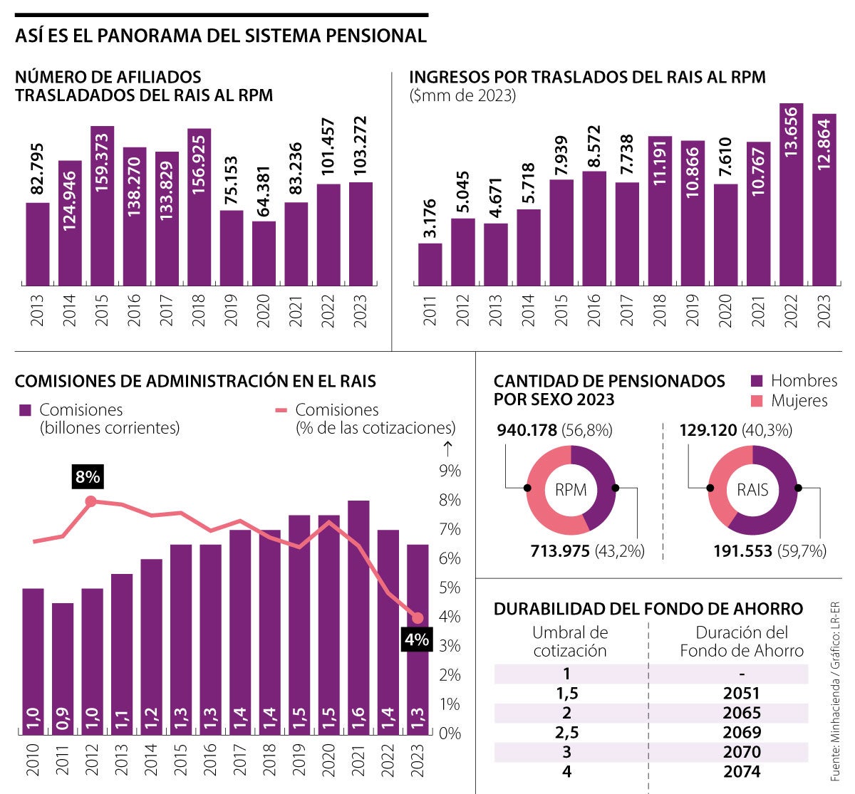 No obstante, Bonilla dijo que hay que eliminar la competencia entre los dos regímenes y volver los dos sistemas complementarios. Según la presentación del ministro, en los últimos años, el número de traslados ha presentado un incremento significativo, junto con el monto promedio trasladado por afiliado. “Hay una fuga al régimen de prima media de $94,1 billones”, dijo.